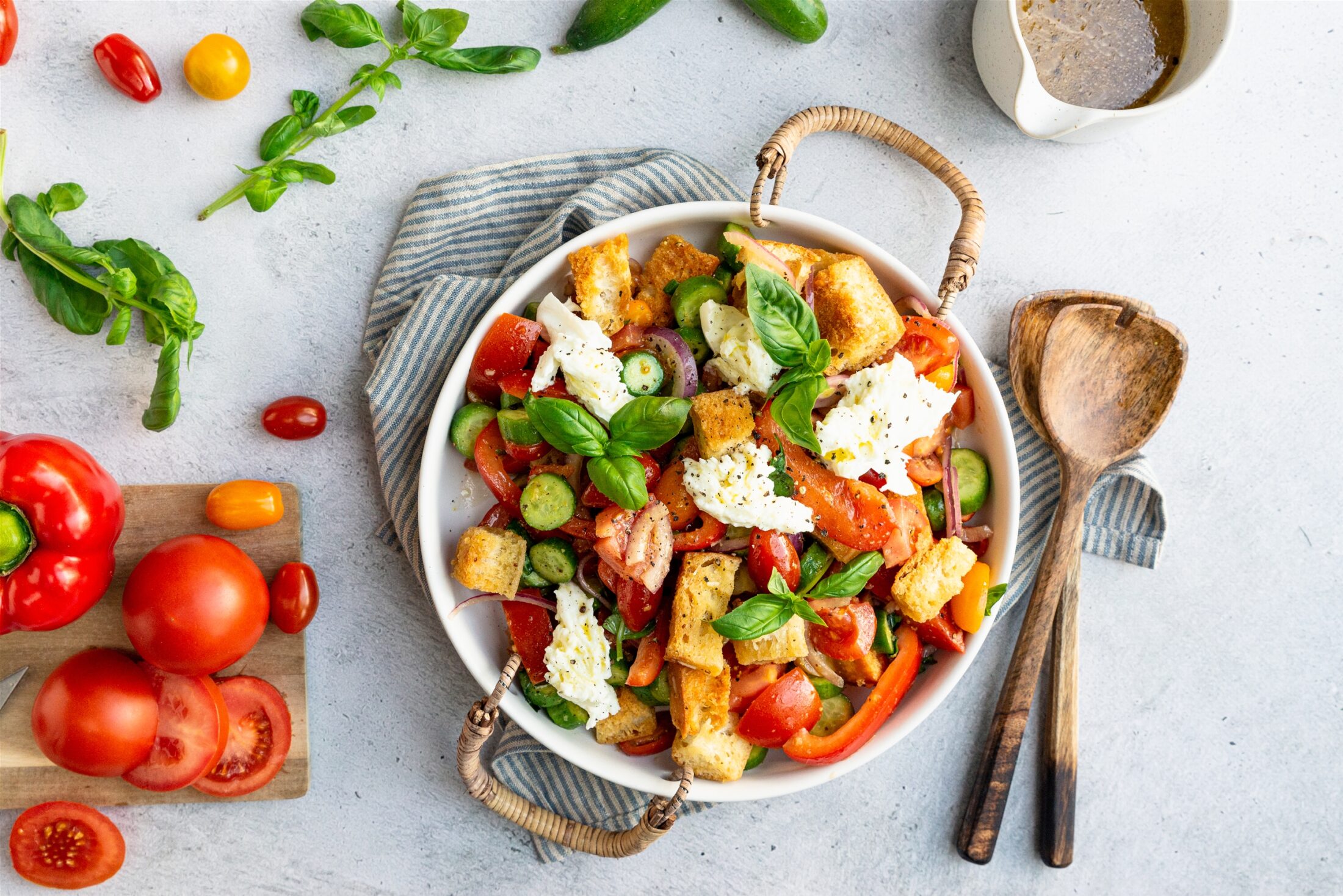 Pyszna, świeża sałatka pełna witamin i domowych grzanek!